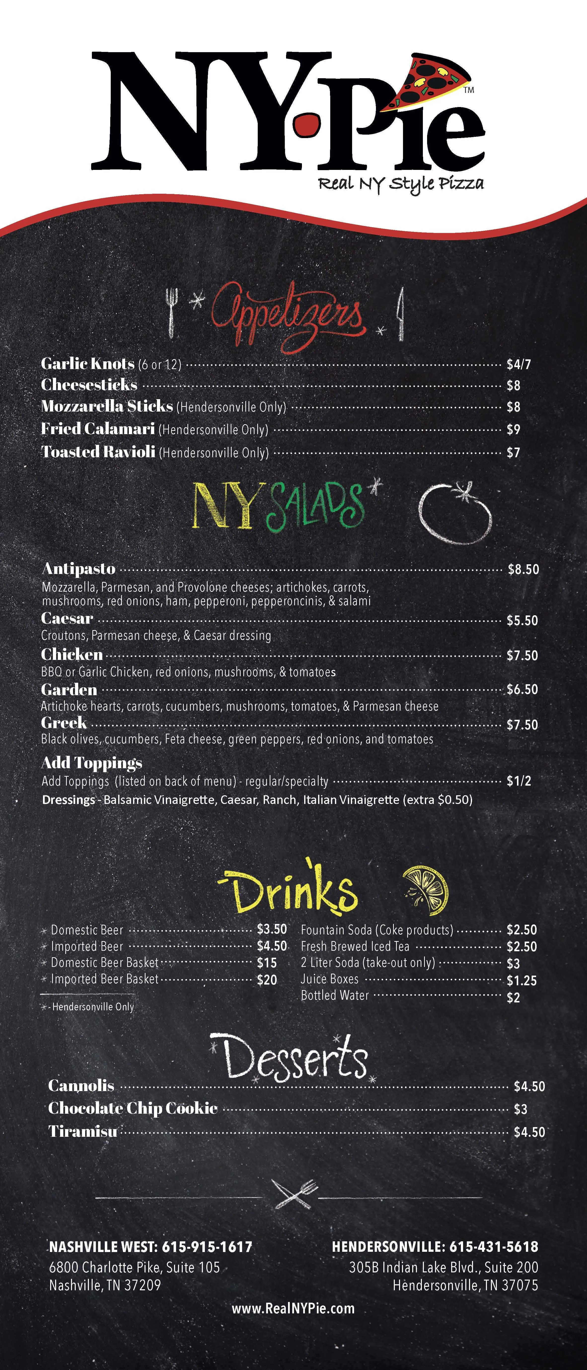 NY Pie is a local restaurant in the Nashville area that serves authentic New York-style pizza. The owner, a New Jersey native, established the pizzeria to bring the experience of a classic, hand-tossed NY slice to Tennessee, emphasizing fresh, high-quality ingredients and a family-friendly atmosphere.